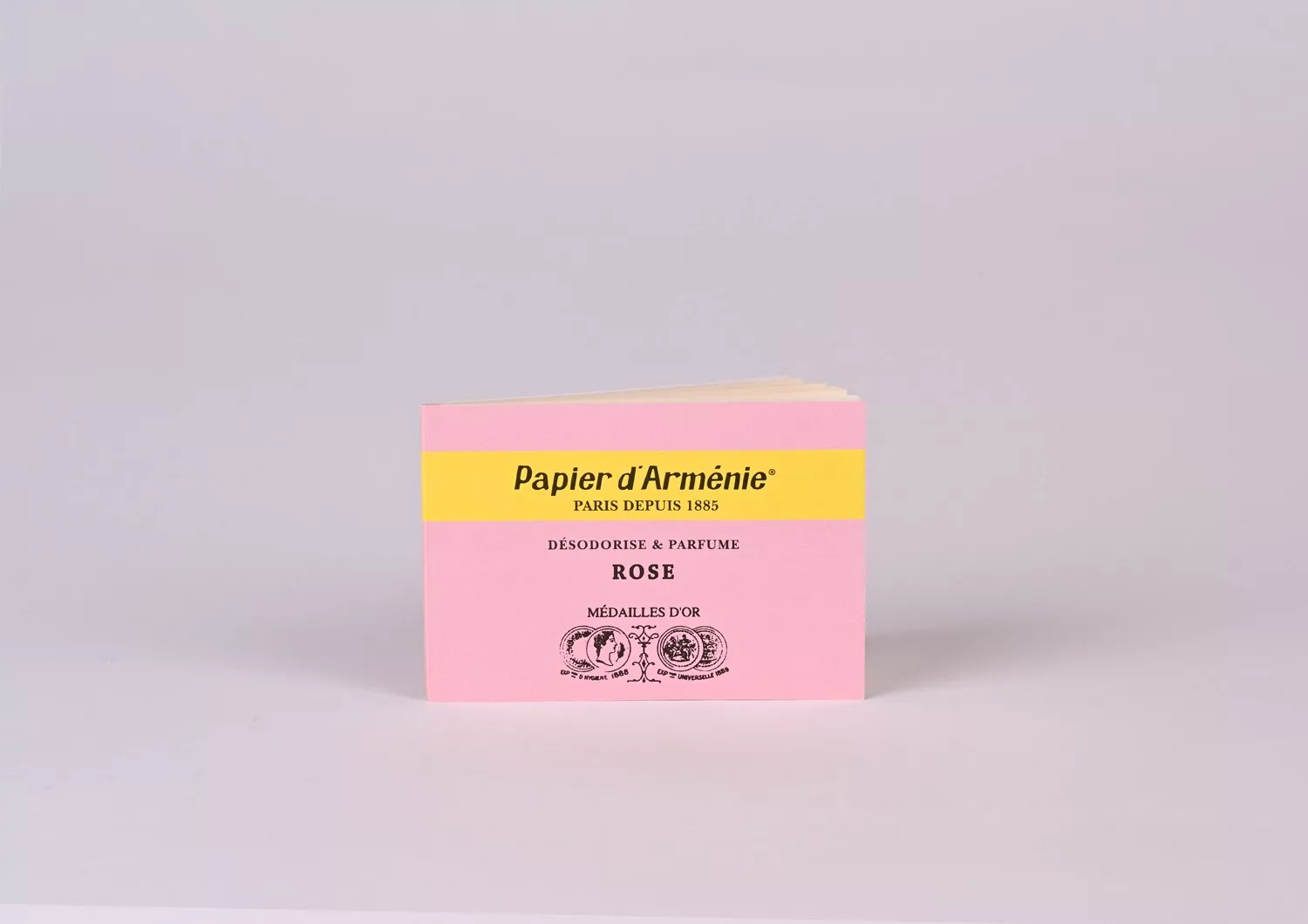 Die legendären Heftchen Papier d'Arménie® sind mit Rose beduftet, um den neuen Duft des Augenblicks zu begrüßen. Unter Beibehaltung der bekannten orientalischen Noten besitzt das neue Heft einen ansprechenden Rosenduft und verbreitet exklusiven Duft, wenn die Streifen verbraucht werden.
